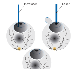 Der Eingriff erfolgt durch einen Schnitt, Flap oder Hornhaut-Scharnier, mittels einer Intralase-Laserbestrahlung. Dann wird der darunterliegende Hornhaut-Bereich mit dem Laser abgetragen und schließlich wird der Flap zurückgeklappt, der in maximal 24 Stunden selbständig anhaftet. Am nächsten Tag des Eingriffs kann der Patient schon seine Alltagsaktivitäten normal entfalten.