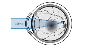 Wegen einer längeren Form des Augapfels als im Normalfall, bilden die Lichtstrahlen das Bild vor der Netzhaut, was ein unscharfes Bild von entfernten Gegenständen und ein scharfes der näheren erzeugt.