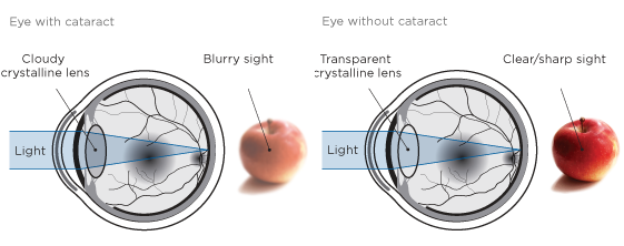 When the crystalline lens becomes cloudy, the sight diminishes.