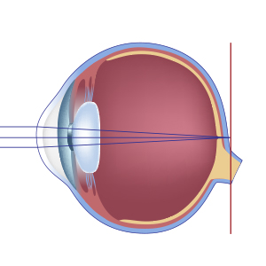 Debido a que el globo ocular es ligeramente más corto que lo normal, los rayos lumínicos forman la imagen detrás de la retina, provocando así una visión borrosa de los objetos lejanos y cercanos. Por un reacomodamiento extra realizado por el músculo ciliar, los hipermétropes jóvenes suelen visualizar correctamente los objetos lejanos, pese a sufrir cierta fatiga ocular por dicho esfuerzo.
