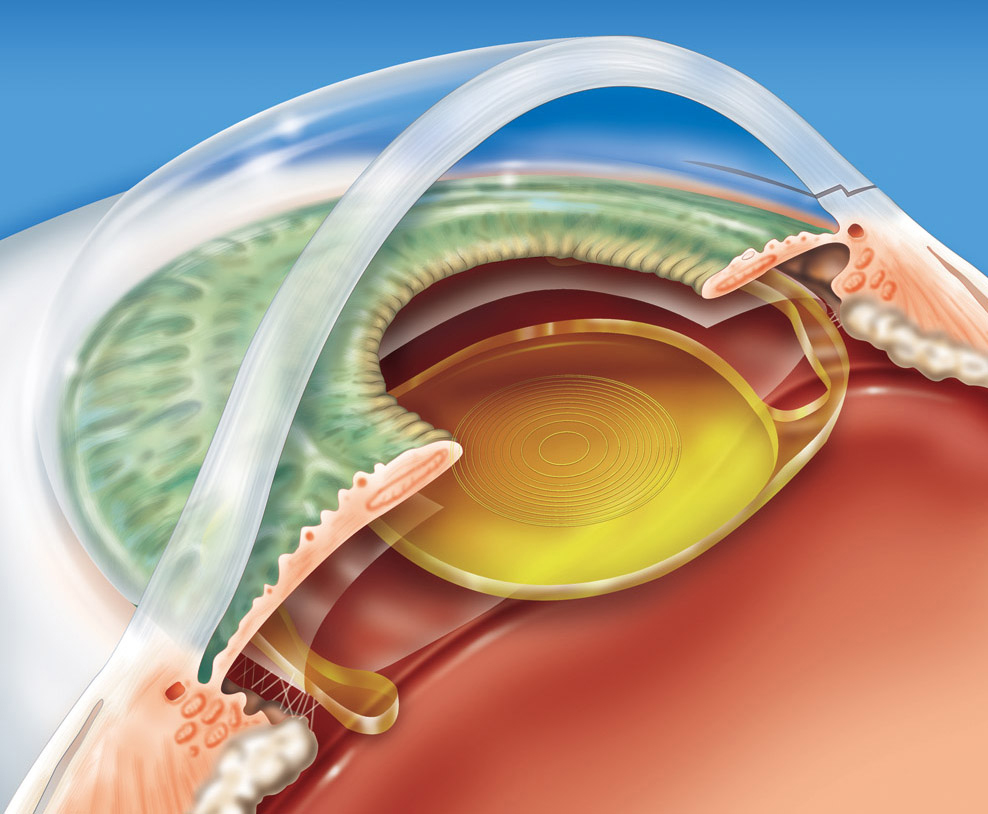 Implica la colocación de una lente intraocular con las dioptrías necesarias dentro del ojo, delante del cristalino.