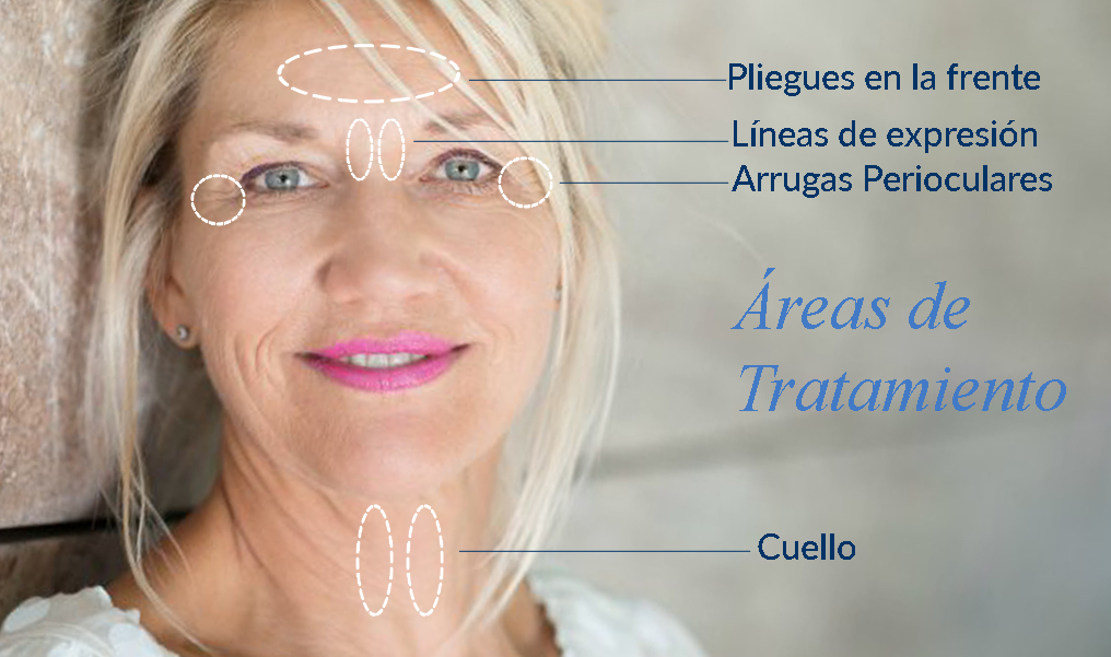 Es un método magnífico para la corrección de arrugas de contracción del tercio superior de la cara: patas de gallo, entrecejos, frente, contribuye a la elevación de la cola de ceja obteniendo una expresión más juvenil y relajada.